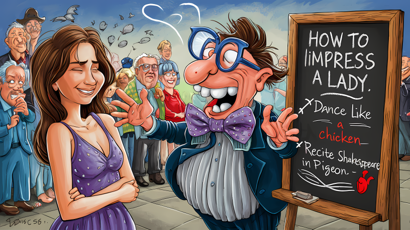 3. Смесвате нагло държание с умерена сервилност. Говорете по теми, от които нищо не разбирате все едно сте светило в областта. Отделете достатъчно време да говорите за колата си – защо предпочитате тази марка пред други, разкажете подробно за спечелените от вас светофарни състезания.