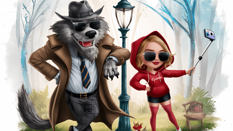 Имало едно време едно момиче на име Червената шапчица, което било толкова вглъбено в Инстаграм и Тик Ток, че вече не различавала виртуалния свят от реалния. Мечтаела за хиляди лайкове, скъпи чанти, мъже с огромни бицепси и още по-големи… коли.